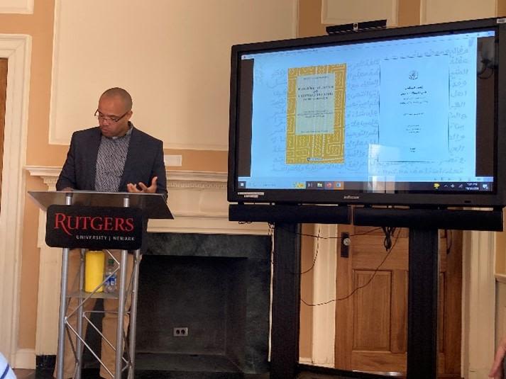ISGRJ-Camden Co-Director and Quilting Water Director Patrick Rosal presents at the "Quilting Water: Voicing Our Stories" event at Rutgers-Camden on November 17, 2023