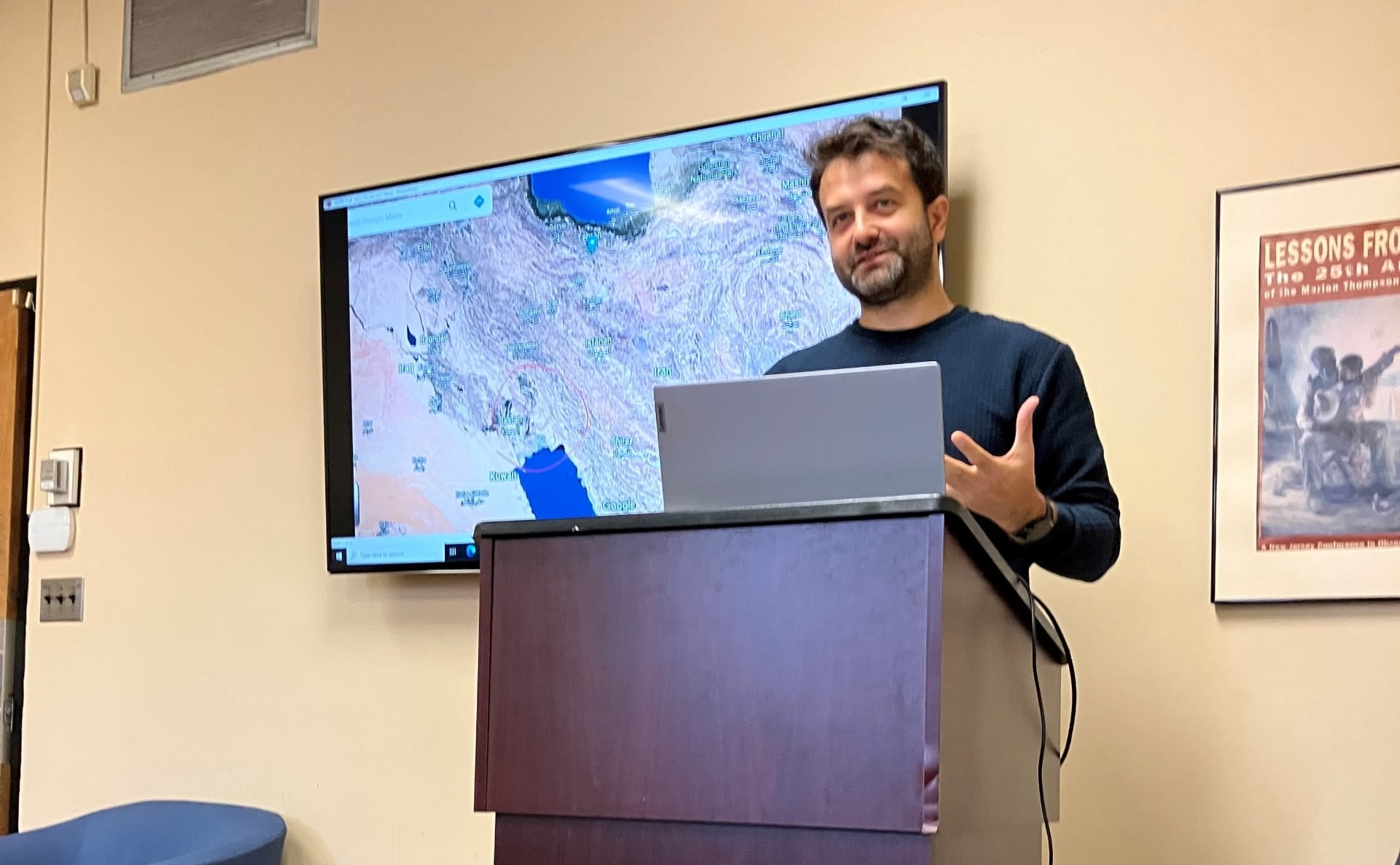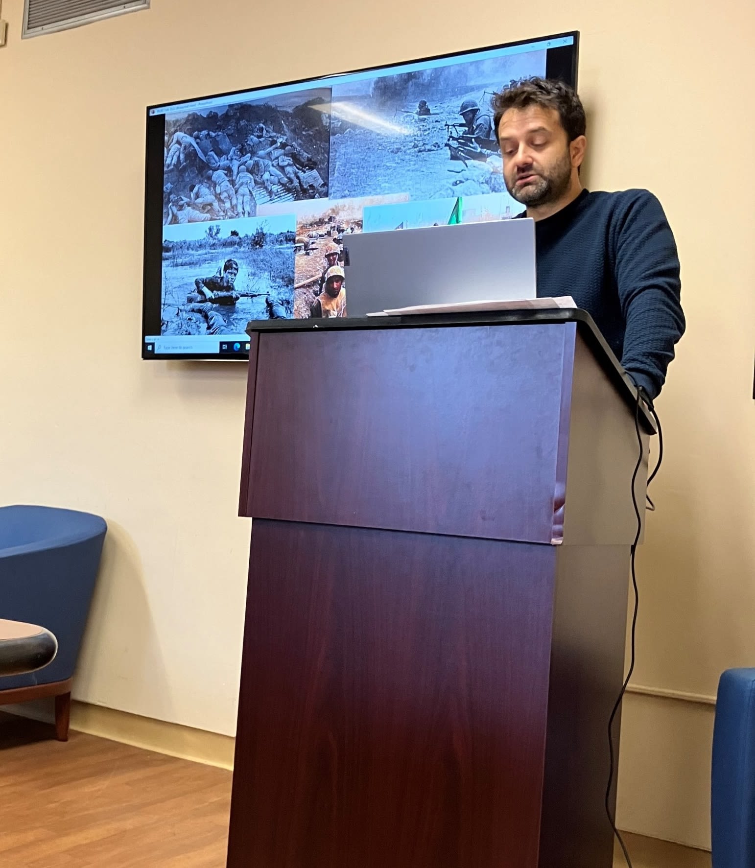 Amir Moosavi presents "Contaminated Marshes and Headless Palms: the Environment and the Ghosts of War in Contemporary Arabic and Persian Fiction of the Iran-Iraq War" during Conversation & Connections on December 4, 2023.