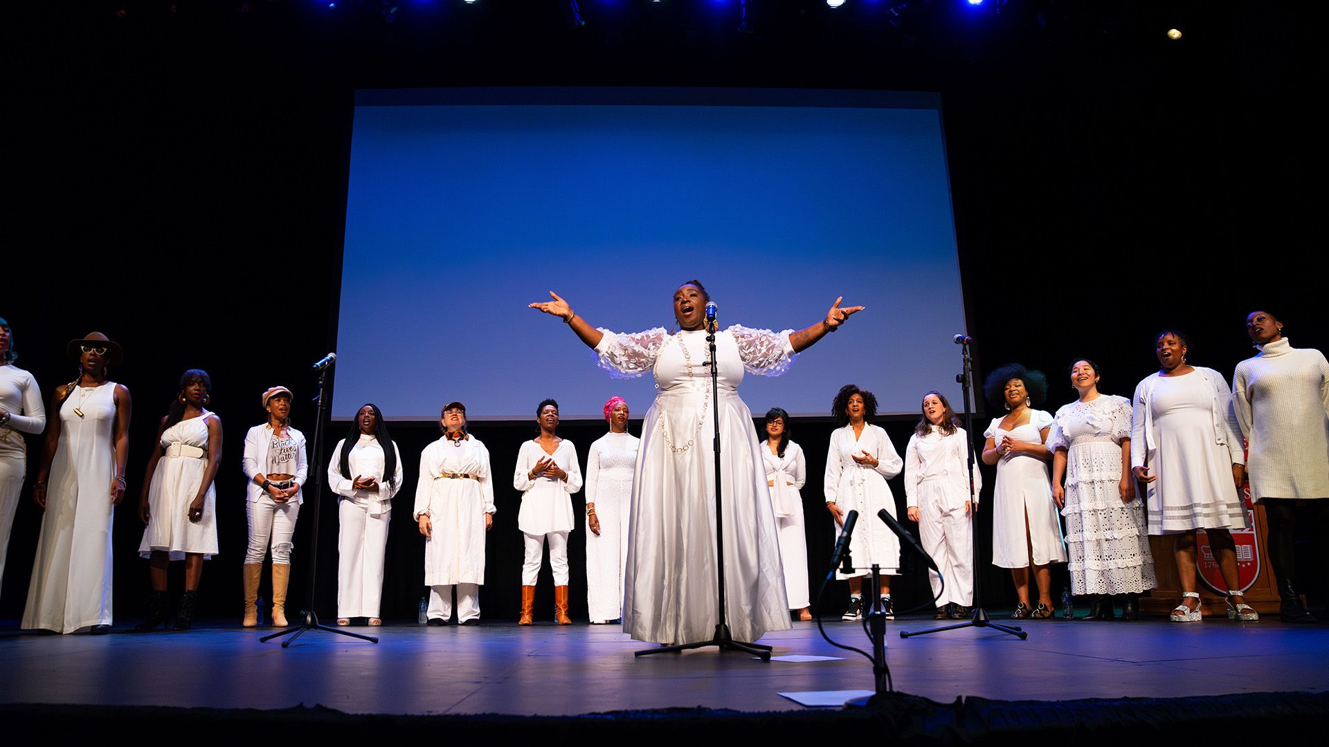 The Resistance Revival Chorus performs at the "Quilting Water: Voicing Our Stories" event at Rutgers-Camden on November 17, 2023