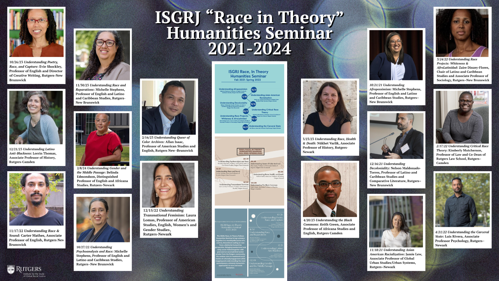 I also want to thank everyone referenced here for making this a fabulous and productive year. A special thank you to my colleagues who have been generous with their time and insights in joining the ISGRJ “Race, In Theory Fellows Humanities Seminar”—what a thrill to engage with you and our gratitude for your role in helping us mentor and engage these young scholars.